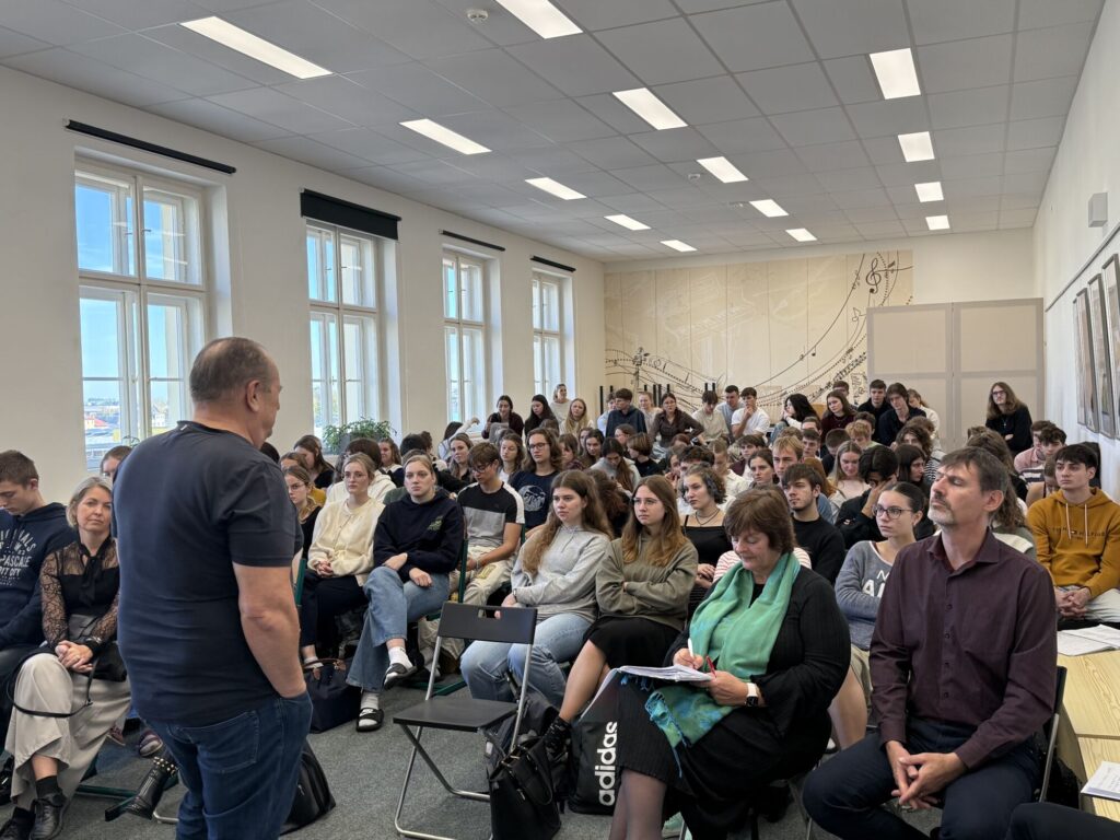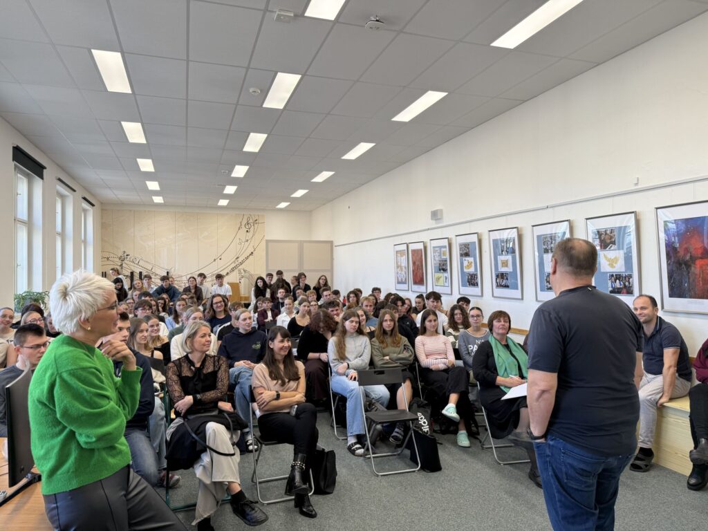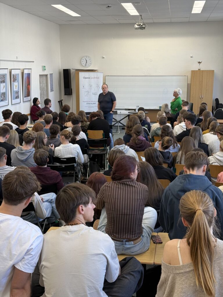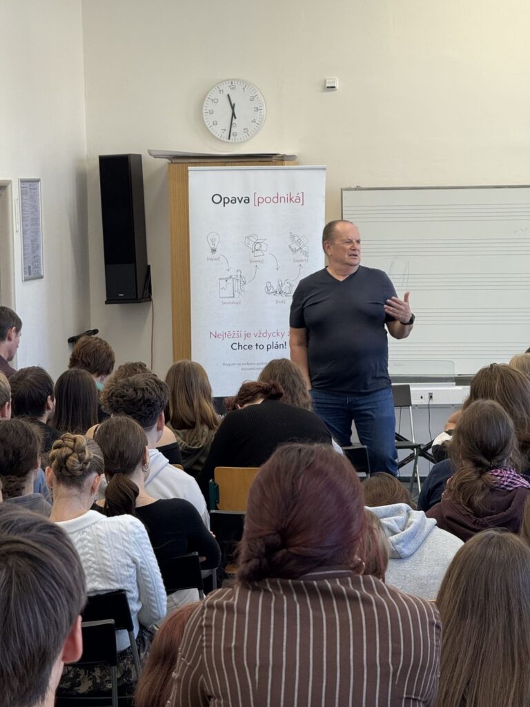 Program byl skutečně nabitý. Václav Novák odstartoval své opavské působení již ráno na Mendelově gymnáziu, kde se setkal se zhruba stovkou studentů. Předat zkušenosti nové generaci je investice, které si ceníme jak my v komoře, tak osobnosti formátu Václava Nováka.